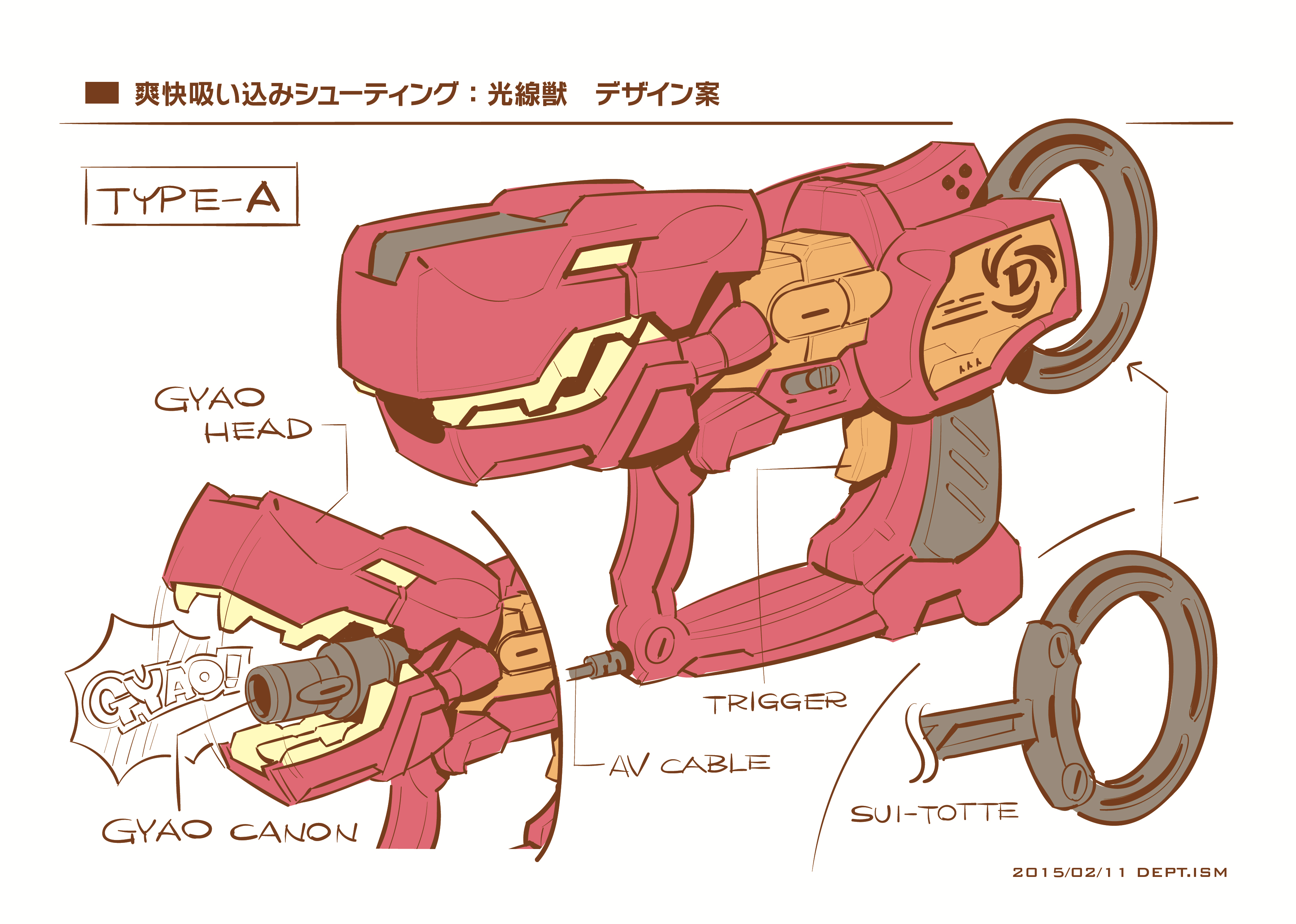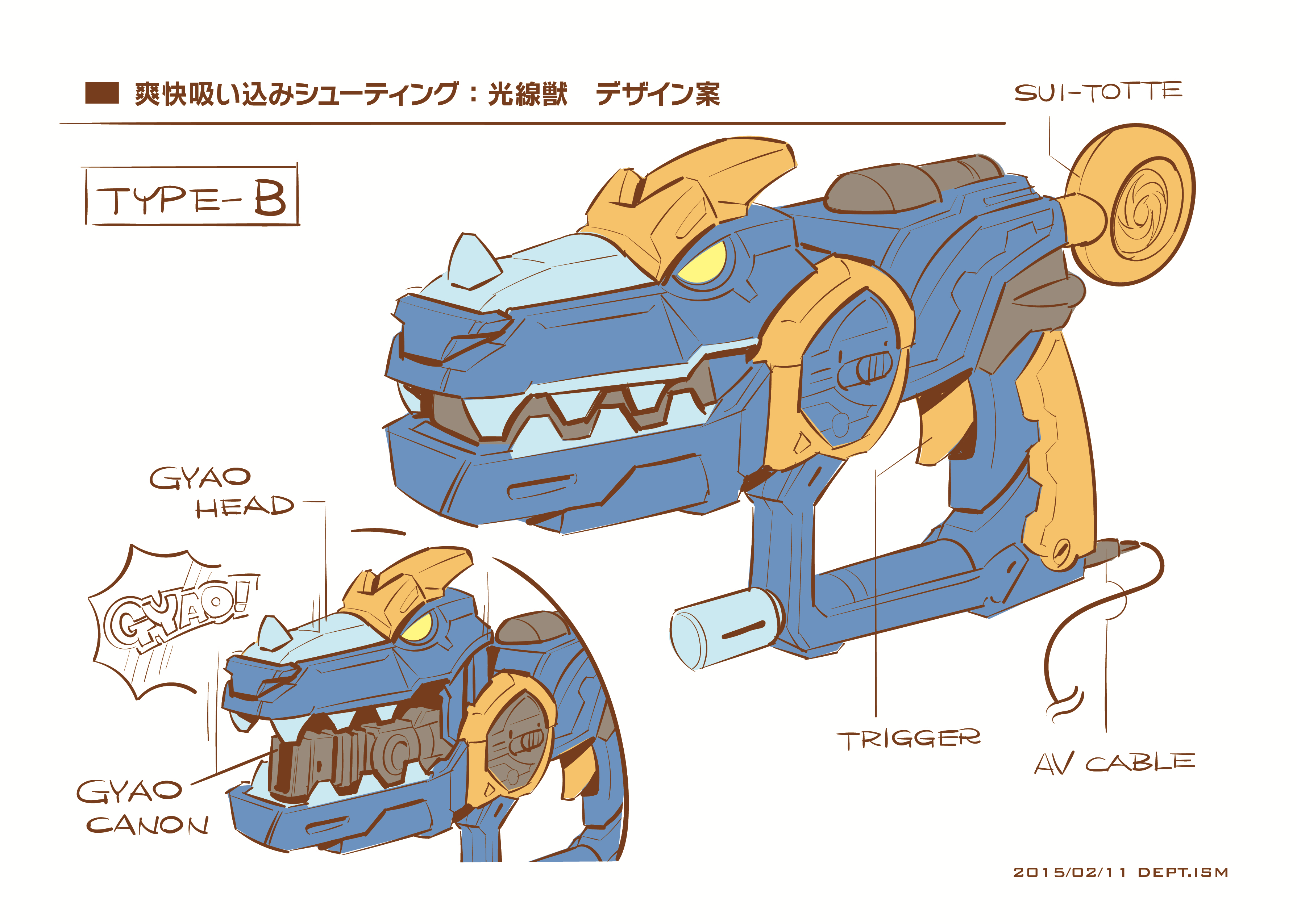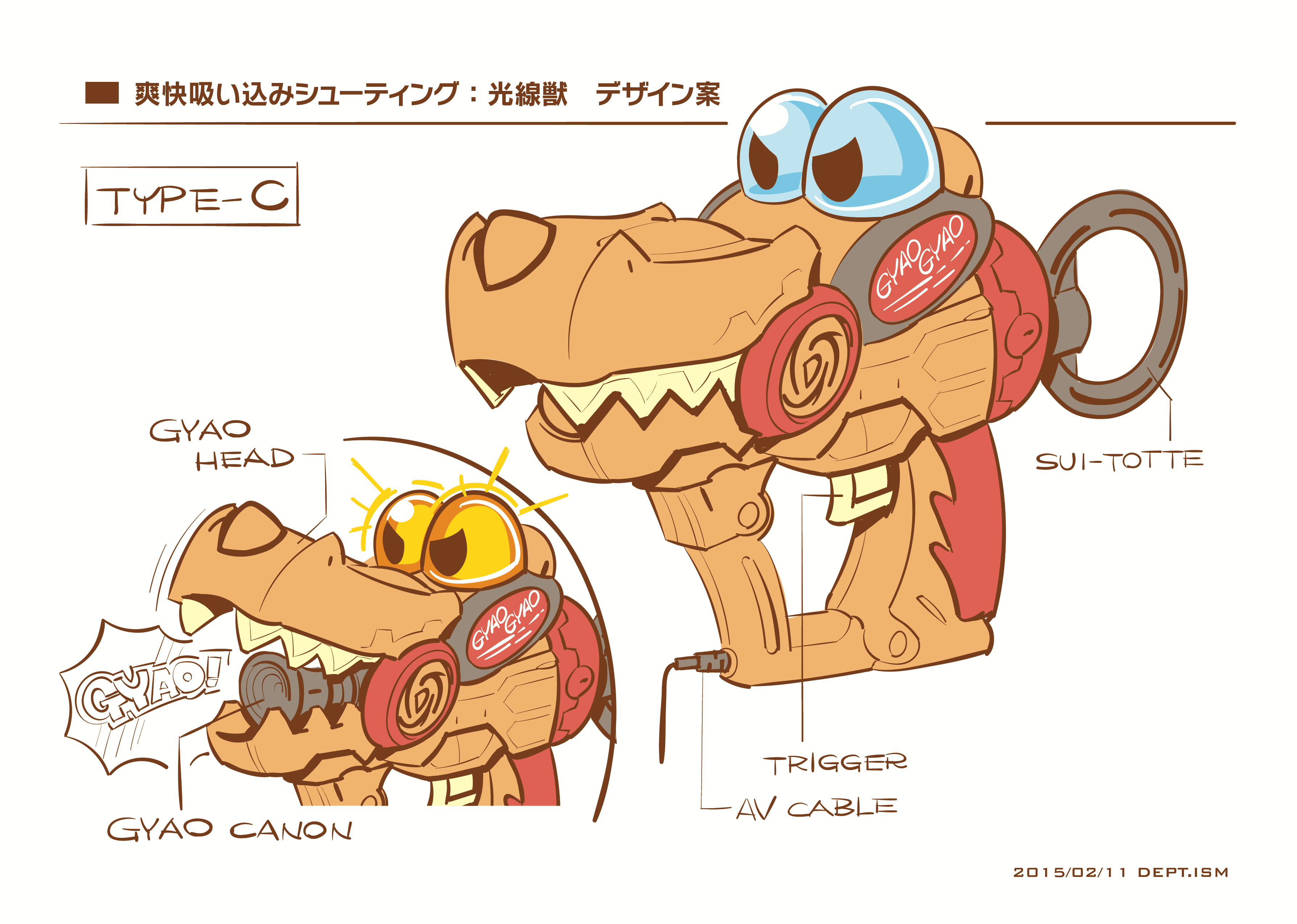 Phase 1: Dinosaur MotifNOTE: 最初の構想ではゲームのストーリーがSF的&コミカルな世界観だったため、リアルな銃モチーフは避け、子供に人気の恐竜をモチーフとした空想デザインで検討。