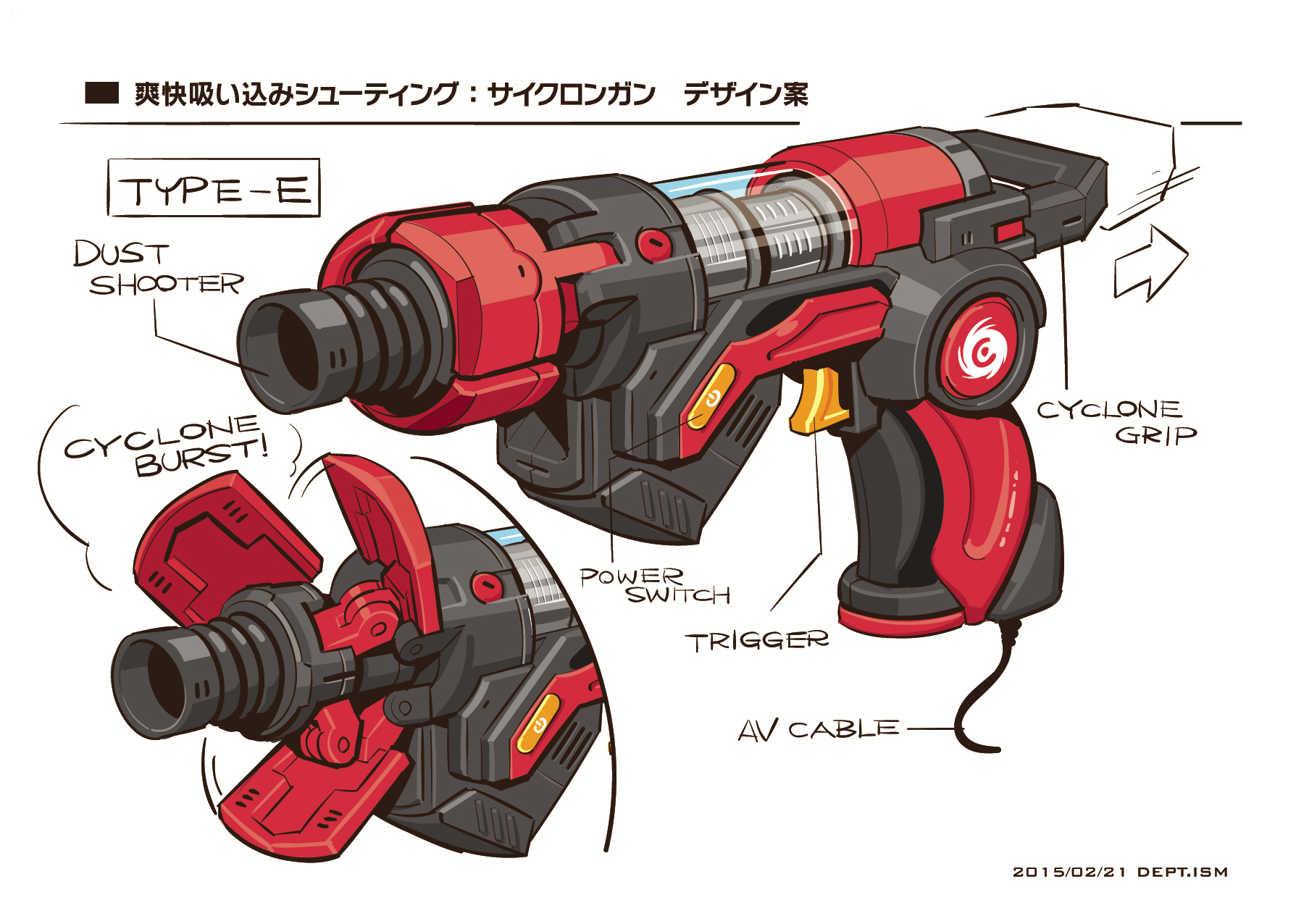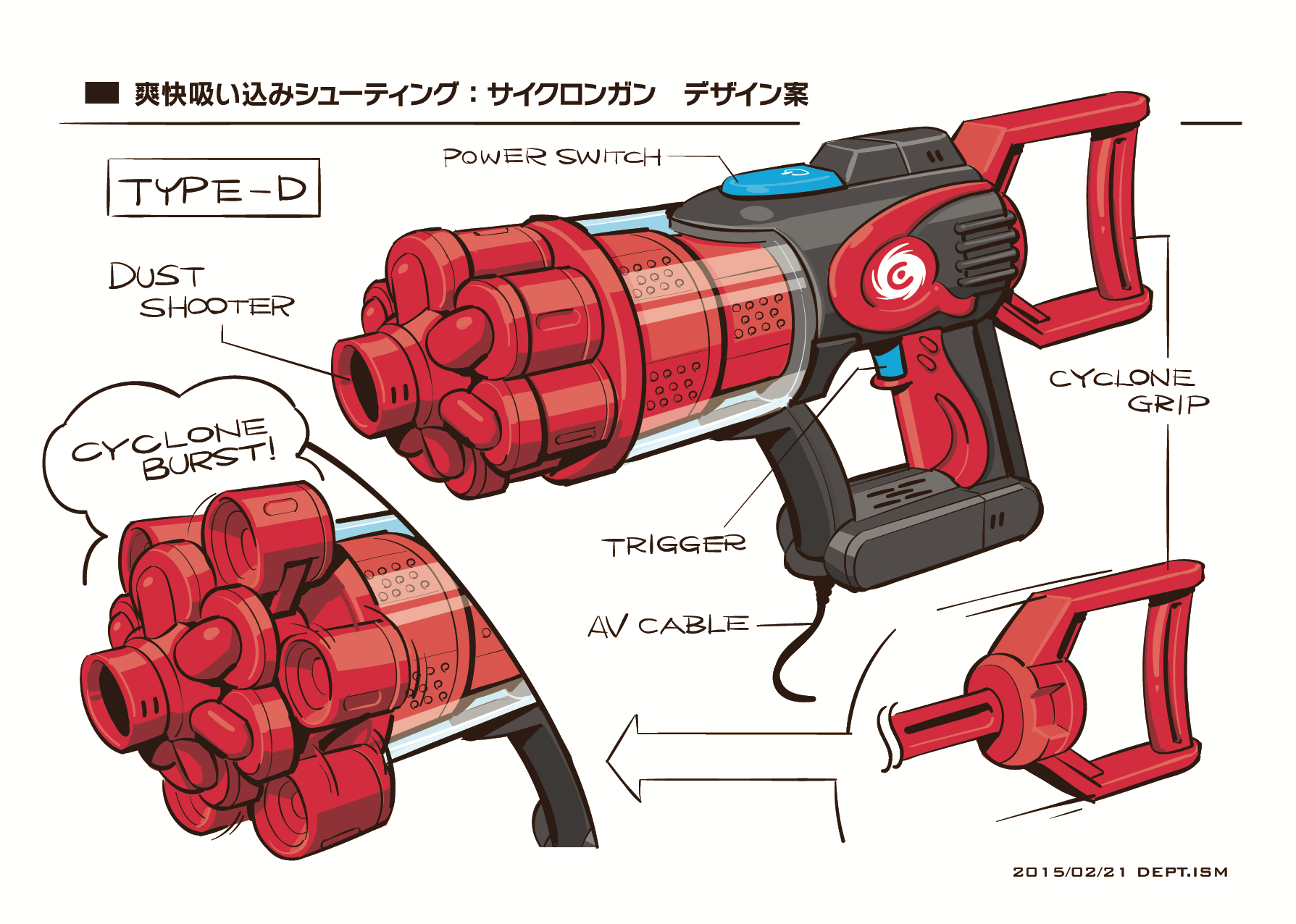 Redefining the Concept市場でサイクロン掃除機が流行しているのを見て、コンセプトを**「吸引(CYCLONE)」**に大きく方向転換しました。ギミックの楽しさを最大限に引き出すため、メカニカルで機能美あふれる「キューインガン」の設計へと進みました。
