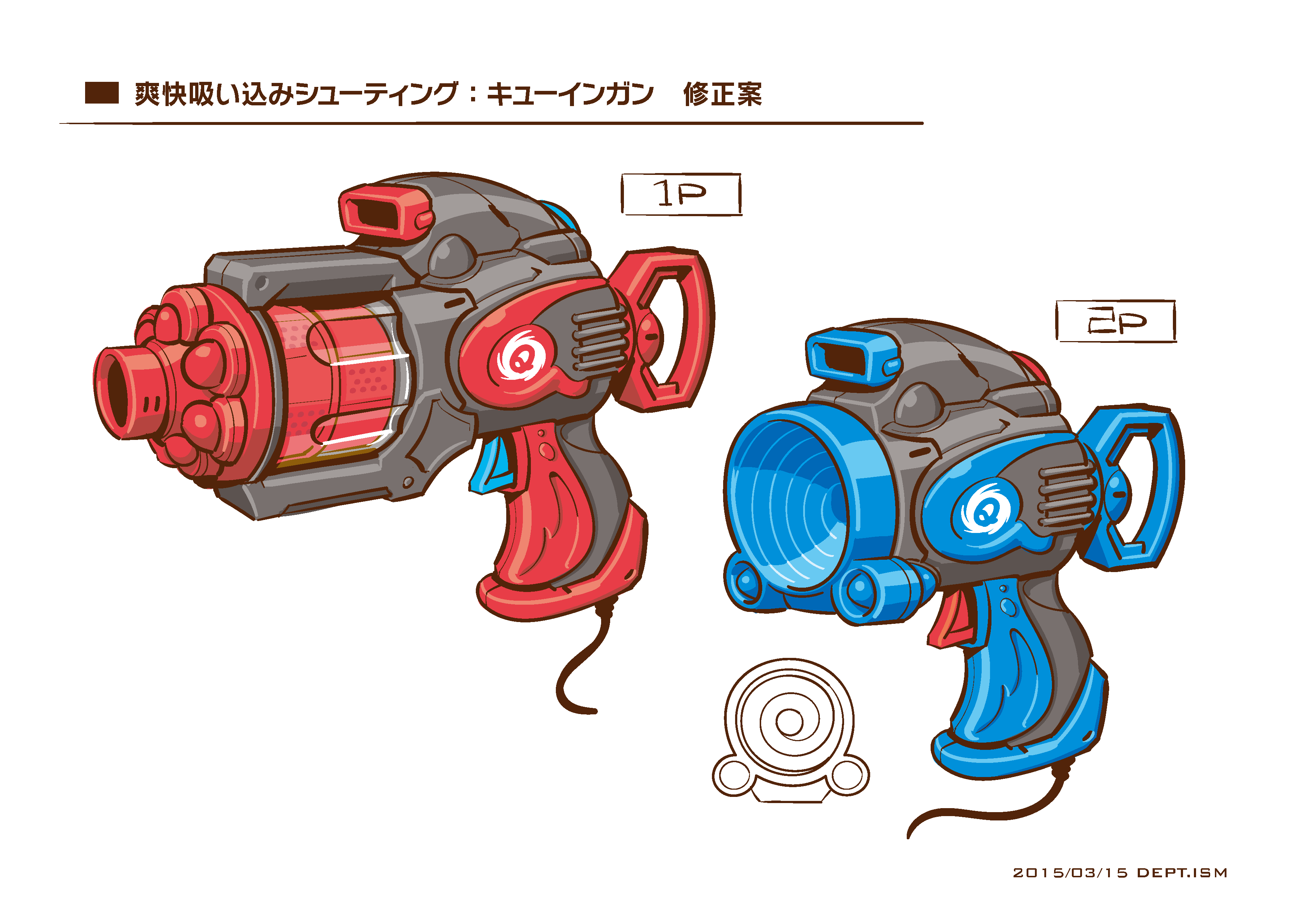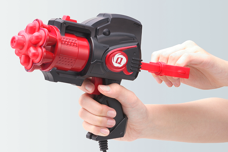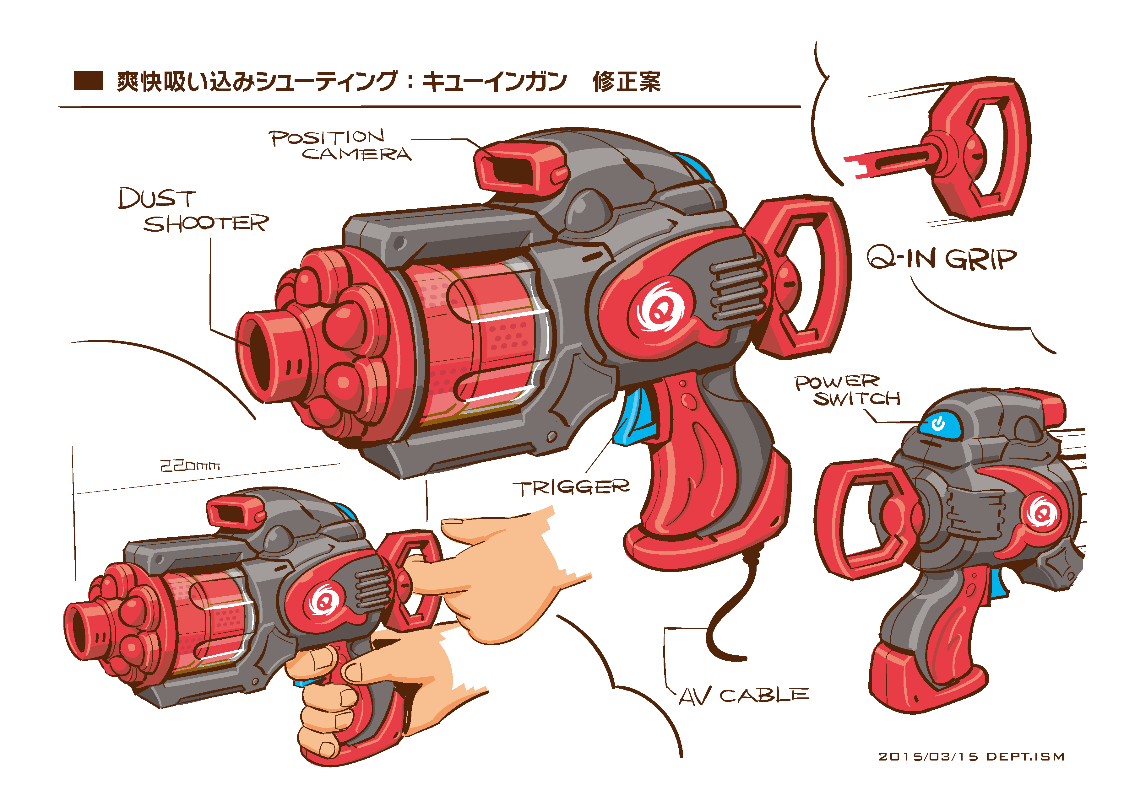 「キューインガン(2016)」は、本体をテレビに接続するだけで遊べる手軽なゲーム機です。単なるガンシューティングではなく、「吸い込み」アクションが特徴的です。商品化までのデザインプロセスを解説します。